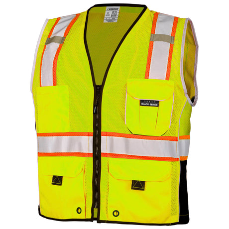 Kishigo 1515 Black Series Black Bottom Safety Vest - Yellow/Lime