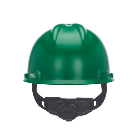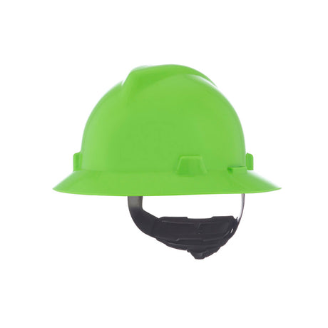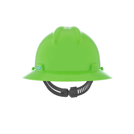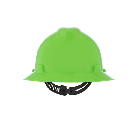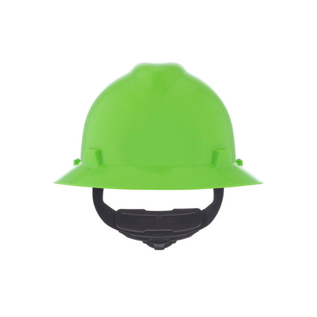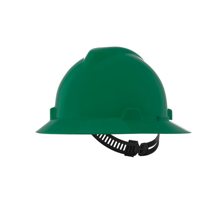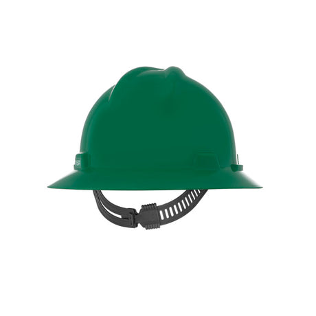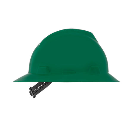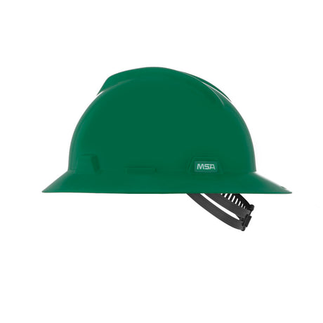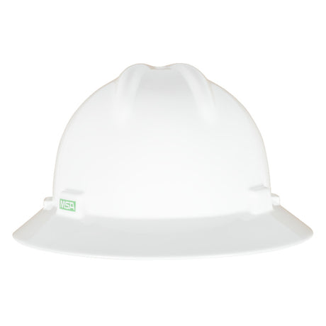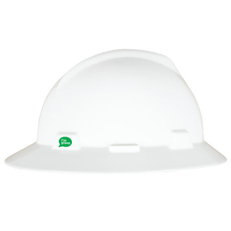 MSA V-Gard GREEN Full-Brim Hard Hat - 4-Point Fast-Trac III Suspension - White