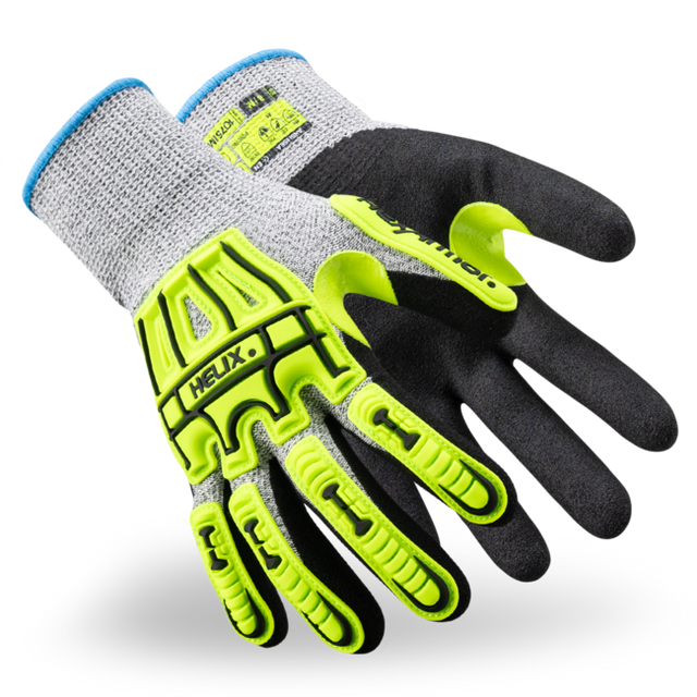 Innovation intertwined with full-range safety. That’s the DNA of the Helix® Series. The Helix® 1075IMP features a 13-gauge HPPE/polyester/fiberglass blend shell, combining comfort and durability with a reliable level of cut and puncture protection. The 1075IMP includes back-of-hand IR-X® Impact Exoskeleton™ with level 2 impact protection while the sandy nitrile palm coating delivers solid grip and abrasion resistance in dry or wet situations.