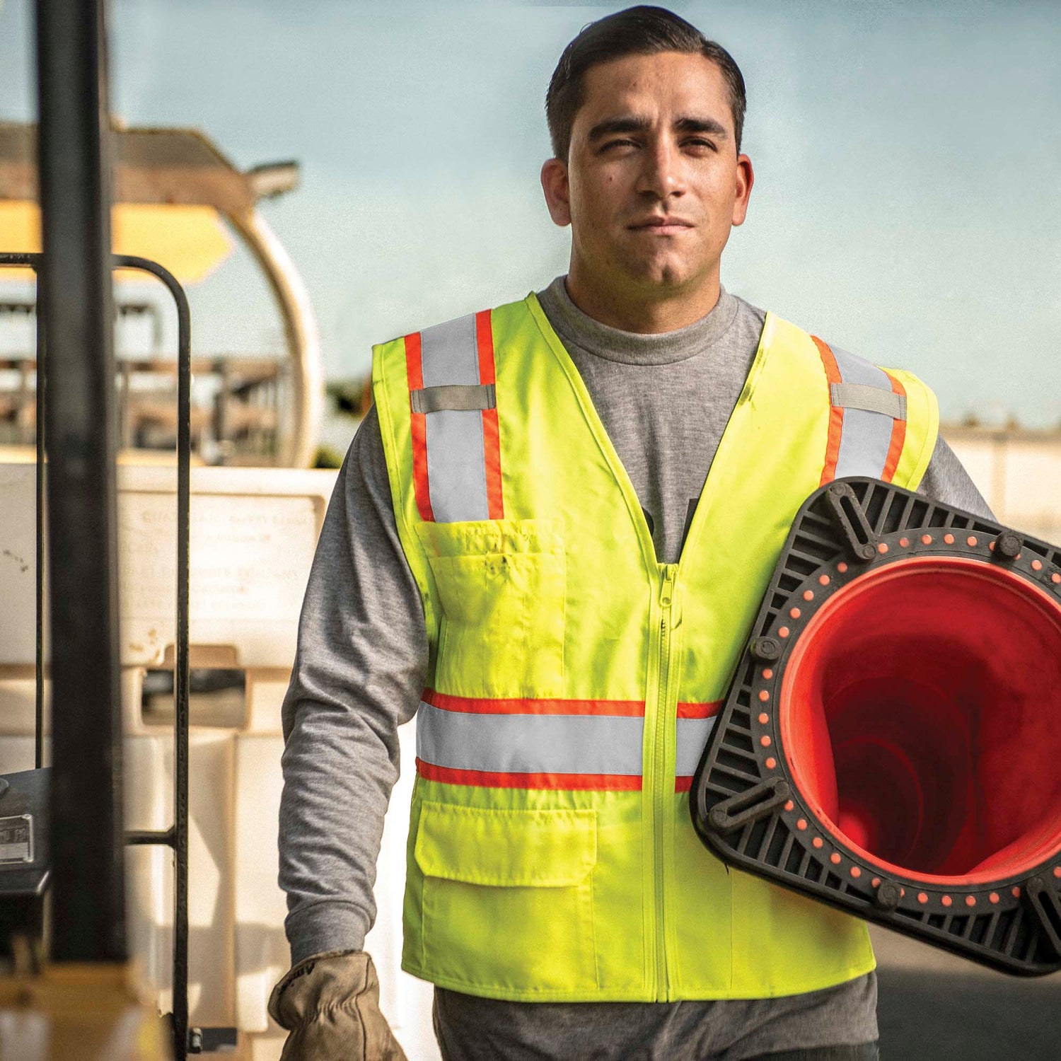 The Kishigo 1163 combines breathable comfort with professional visibility. Featuring a mesh back with solid front construction, this vest keeps you cool during extended wear while maintaining durability where it counts. High-performance 2" reflective striping with 3" contrasting trim ensures you're seen in low-light conditions. Strategically placed pockets—including mic tabs, radio pocket, and multiple storage options—keep essential gear within reach. Zipper front closure for quick on-and-off access. Built for safety professionals who demand both functionality and comfort on the job.