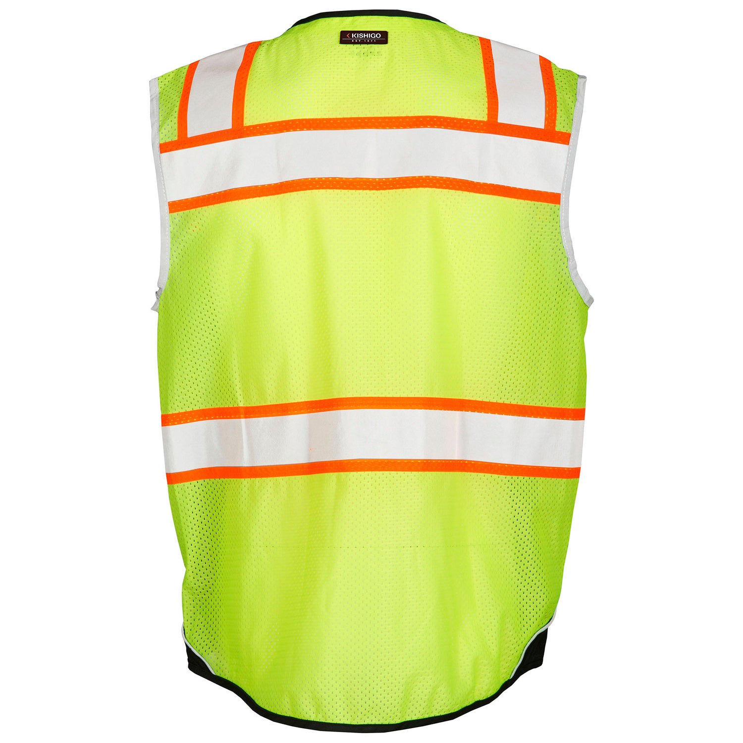 The Kishigo 1515 Black Series combines high-visibility safety with professional durability. Ultra-Cool™ 100% polyester mesh keeps you comfortable while the heavy-duty black bottom and trim maintain a clean, polished appearance. Featuring 2" silver reflective materials and 3" breathable contrasting color with reflective arm trim and side piping for enhanced low-light visibility. Zipper front with reinforced webbing, mic tabs, and multiple pockets—including expandable cargo pockets, a tiered pencil pocket, gusseted radio pocket, and an interior tablet pocket with load-bearing strap. Built for professionals who demand visibility, comfort, and functionality.