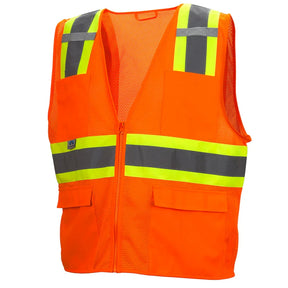 Stay safe and comfortable on the job with the RVZ23 Series Safety Vest in Hi-Viz Orange. Crafted from lightweight polyester mesh, this vest ensures breathability in warm conditions while durable enough for demanding work environments. Its bright fluorescent color and 2-inch silver reflective striping boost visibility both day and night. Designed to meet ANSI/ISEA 107-2015 Type R Class 2 standards, it offers reliable compliance for roadside and construction tasks. Multiple pockets keep tools and essentials within reach, and a secure zipper front allows quick and easy wear.